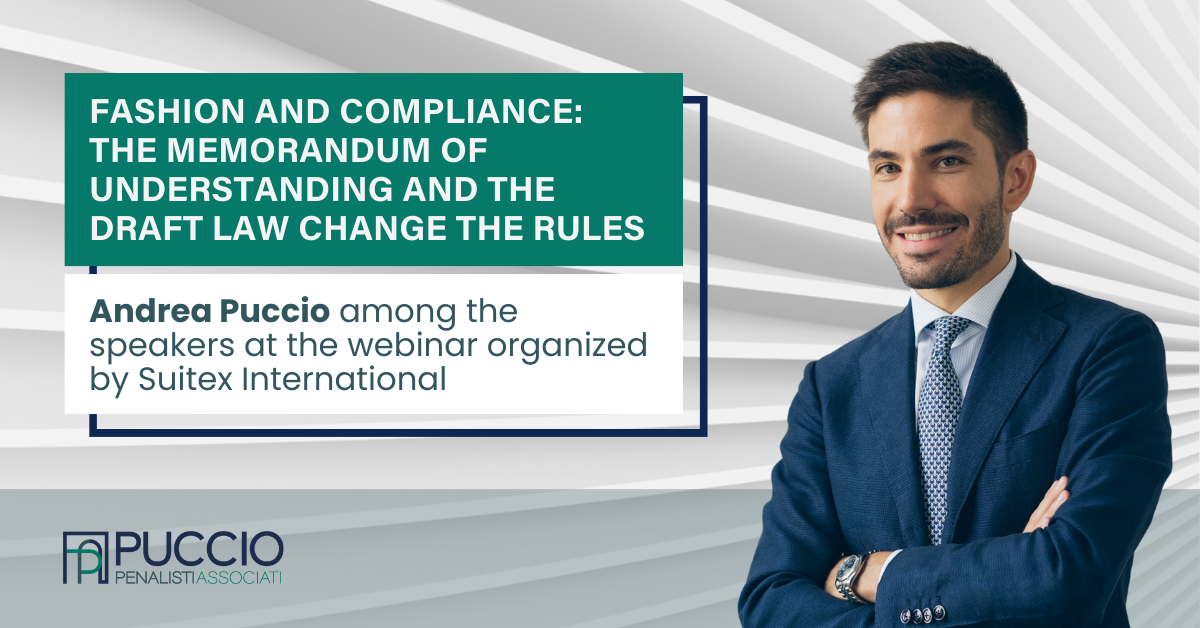 On 27 November, our Founding Partner Andrea Puccio was speaker at the webinar “Fashion and compliance: the Memorandum of Understanding and the Draft Law change the rules”, organized by Suitex International. The fashion industry is still at the core of major investigati...